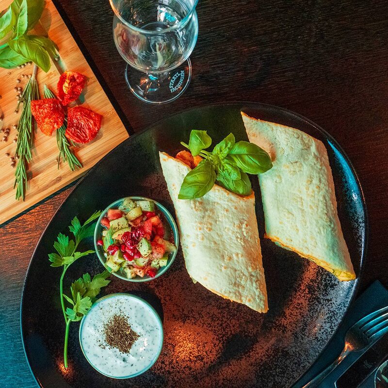 Lavash, unser im Haus frisch gebackenes, dünnes Fladenbrot, ist ein wesentlicher Bestandteil der persischen und nahöstlichen Küche, ideal zum Einwickeln von Kebabs und als Beilage.